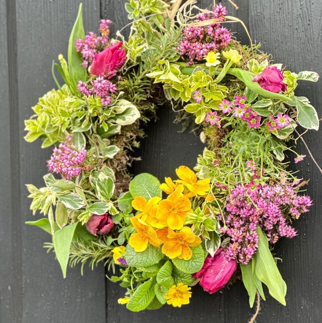 Our living wreaths have a mixture of plants, bulbs and flowers...some of which can be planted out to be enjoyed for years to come.