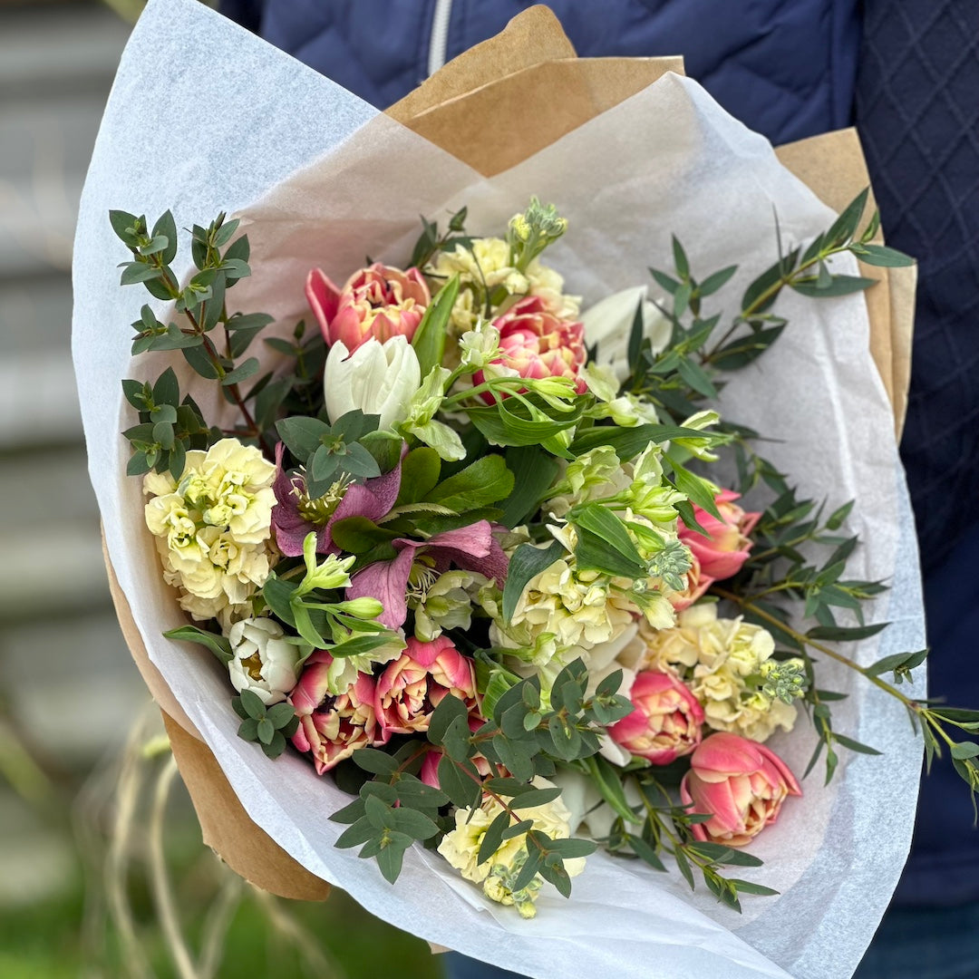Seasonal hand tied bouquets perfect to bring the outside in. Available in a range of sizes ready to be enjoyed in a favourite vase or container.